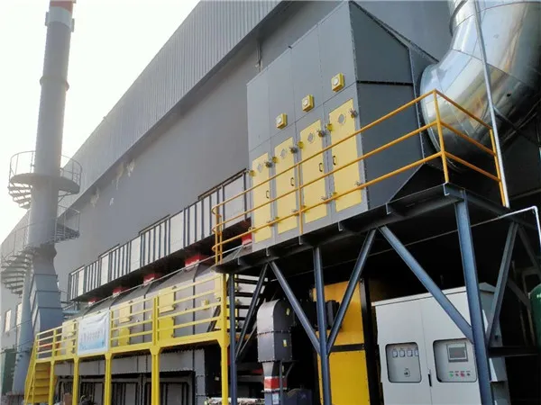 喷涂废气历经水帘柜清理后,对漆雾具有非常好的清理溶解功效,废气进到水自喷废气解决塔,经湿试漩流板废气塔进一步清理解决后,根据充压离心风机进到催化氧化废气净化设备内,经较高能紫外线照射下,使挥发物有机化合物离子键开环增益和开裂等多种多样反映(光化学变化),溶解转化成CO2,H2O等低分子结构化学物质,运用较高能紫外线直射空气中的co2形成活性氧,活性氧消化吸收紫外光形成自由基和co2,自由基与空气中的水蒸汽功效形成羟基自由基,一种更强的还原剂,与醇、醛、羧基等有机化学废气,完全空气氧化为水、二氧化碳等无机化合物后,进到活性炭吸附器开展吸附,废气清洁后,*后根据管路排污到空气中达到环保标准。为达到*佳清洁实际效果,废气经催化氧化废气净化设备溶解后,事后须要3~5秒管路反应速度。